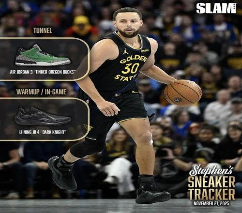 自从与安德玛解约后,库里已经频繁上脚其他品牌和球星的鞋子。